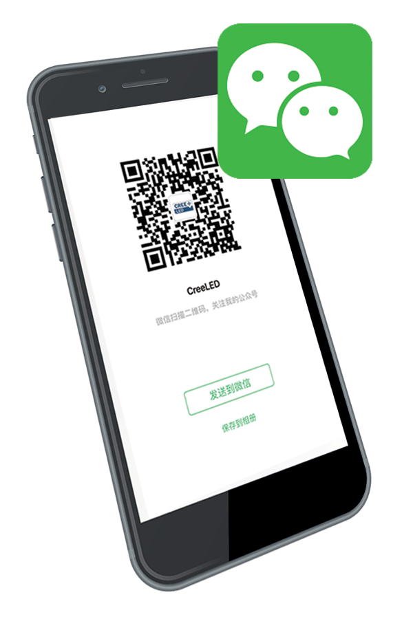 To follow us on WeChat, scan the QR code with your phone or search for WeChat ID: CreeLED.