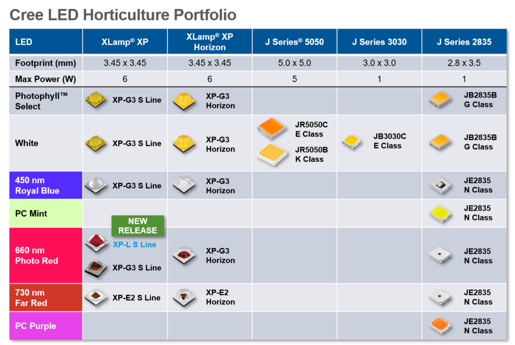 Los LEDs S Line de Cree LED están diseñados para aplicaciones de horticultura exigentes, asegurando: