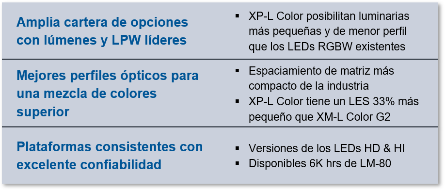 LEDs XLamp® XP-L Color: Propuesta de Valor del LED