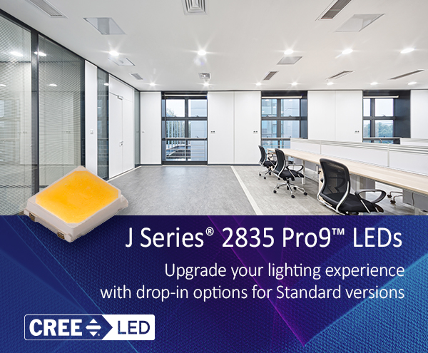 - J Series® 2835 Pro9™ LEDs Cree LED J Series® 2835 LEDs are optimized to deliver the best value with high efficacy to low-density, indoor lighting applications, such as downlights, troffers and panel lights. Pro9™ version LEDs deliver up to 24% higher efficacy over standard version LEDs without sacrificing color rendering quality.
