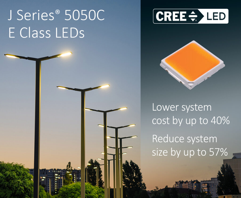- J Series® 5050C E Class LEDs offer the industry’s highest efficacy for high power LEDs at 228 lumens per watt (LPW) typical at 4000K, 70 CRI and 1W. The breakthrough performance of 5050C E Class LEDs enables up to 40% system cost savings through the reduction in optics, PCBs and chassis material and 57% reduction in size.