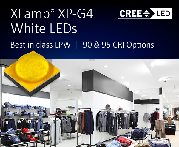 - XLamp® XP-G4 White LEDs incorporate the latest advancements in high-power LED technology for improved optical performance while delivering industry leading efficacy. XP-G4 is optimized for a wide range of both indoor and outdoor directional lighting applications requiring precise light control, good color over angle and long-term reliability.