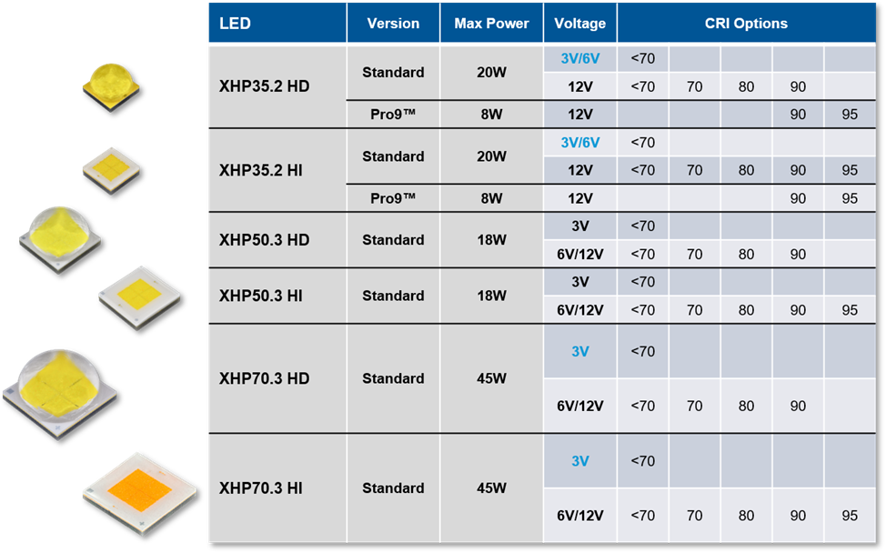 XLamp XHP 3V Product Selector