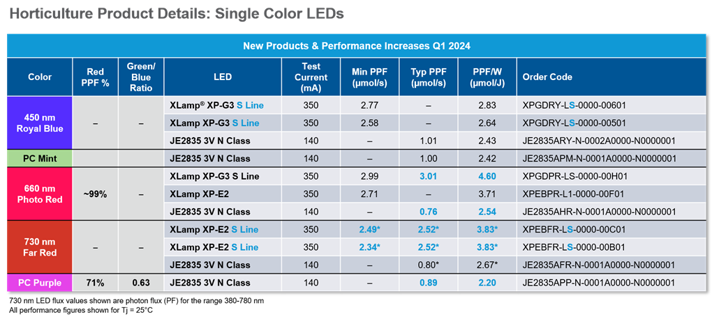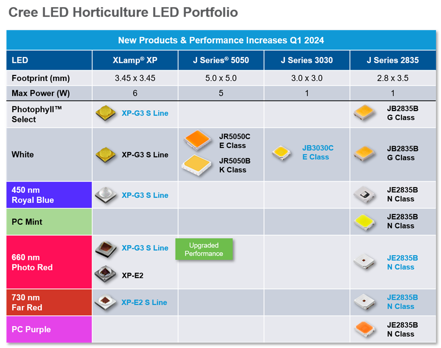 Cree LED has expanded its portfolio of XLamp horticulture LEDs with new S Line options: