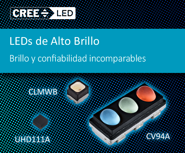 - CV94A: LEDs empaque SMD multicolor RGB (rojo, verde y azul por sus siglas en inglés) 3-en-1 diseñado para reemplazar LEDs P2 en letreros/pantallas LED cuyo paso de píxel es de 10+ mm, ahora con ángulos del haz de luz 90°/45°