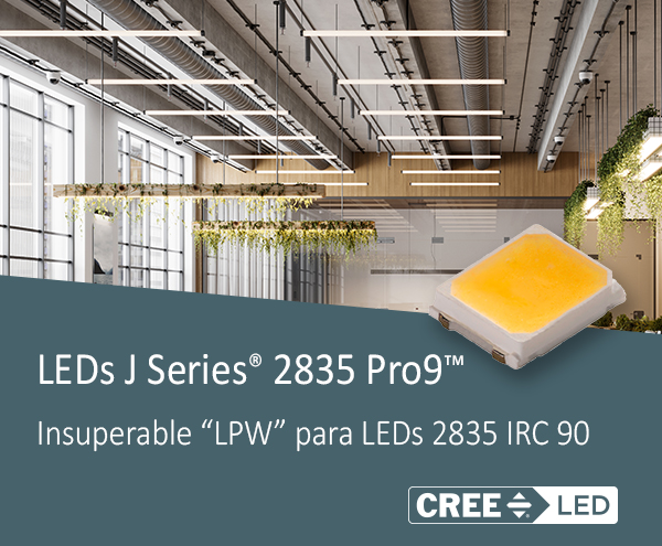 Los LEDs J Series® 2835 Pro9™ están optimizados para entregarnos a un costo accesible la más alta eficiencia en aplicaciones de interiores que requieren una baja densidad lumínica, como lo son luminarios tipo descendentes, empotrables o paneles.