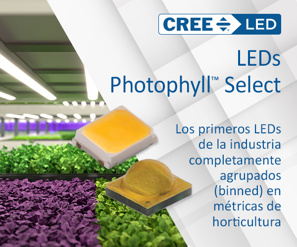 - Los primeros LEDs de la industria completamente agrupados (binned) en métricas de horticultura