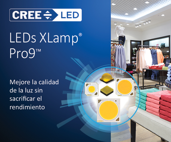 Los LEDs XLamp® Pro9™ mejoran el rendimiento, eficiencia y dimensiones de luminarias LED en aplicaciones comerciales que requieren una iluminación de alta calidad. Los LEDs Pro9™ comparten las mismas características mecánicas, eléctricas que versiones estándar y es posible actualizarse a un mejor IRC sin perdidas en el rendimiento y con un rediseño mínimo. Disponible para TCC: 2700-4000K, IRC: 90 & 95