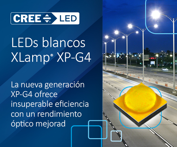 Los LEDs blancos XLamp® XP-G4 incorporan los últimos avances en tecnología LED de alta potencia para mejorar el rendimiento óptico y, al mismo tiempo, ofrecer una eficiencia líder en la industria. XP-G4 está optimizado para una amplia gama de aplicaciones de iluminación direccional tanto en interiores como en exteriores que requieren un control de luz preciso, un buen color sobre el ángulo del haz de luz y una fiabilidad a largo plazo.