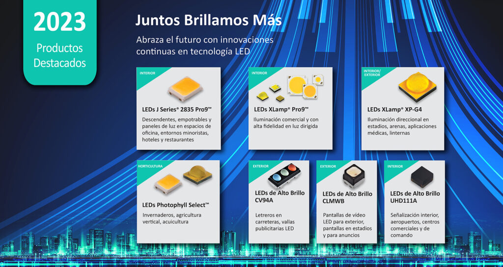 - Los LEDs J Series® G Class Photophyll Select de 3 V combinan este nuevo color con la plataforma 2835 de mayor eficacia de la industria para lograr un rendimiento innovador a nivel de sistema
