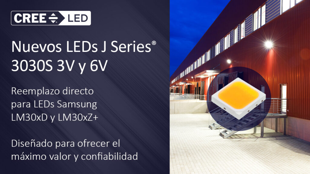 Cree LED expande su prestigioso portafolio J Series® 3030 con cuatro nuevos LED de alto rendimiento que ofrecen compatibilidad con huella 757, eficacia excepcional y reemplazo directo para los populares LEDs 3030 de Samsung.