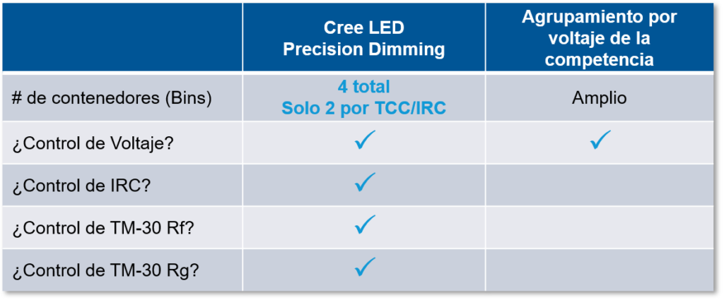 - Con precision dimming, los fabricantes obtienen un control simplificado sobre el voltaje, intensidad lumínica y la reproducción del color.
