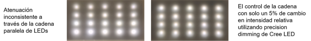 Precision dimming de Cree LED es una nueva técnica de producción que aborda las inconsistencias en la intensidad y tonalidad que surgen al atenuar cadenas paralelas de LEDs a bajas corrientes de operación. Estas variaciones tienen su origen en las características intrínsecas de los LEDs y se pueden minimizar sustancialmente con un diseño adecuado del sistema.