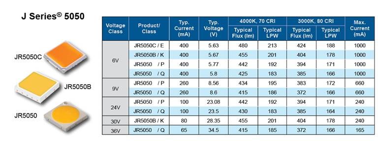 Specifications and product selector for J Series® 5050C E Class LEDs: https://www.cree-led.com/products/leds/j-series/5050/