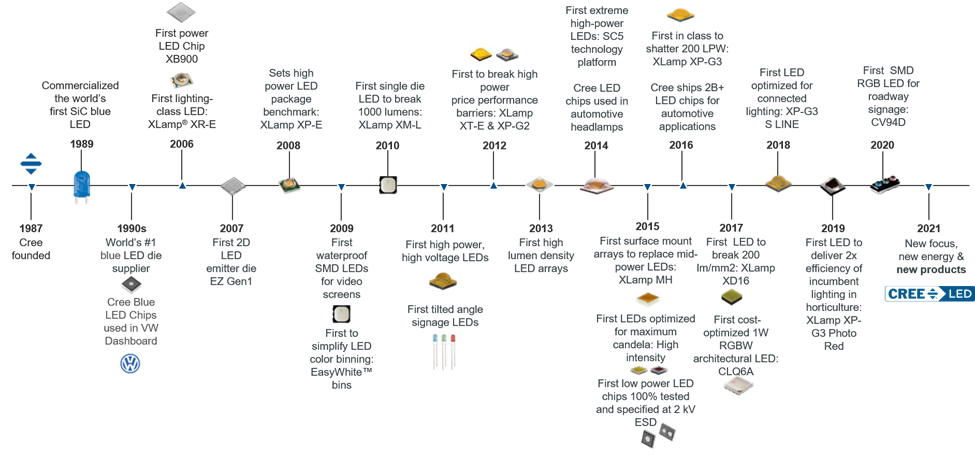 Figure 1. Cree LED’s Timeline of Industry-First Innovations Began in 1989.
