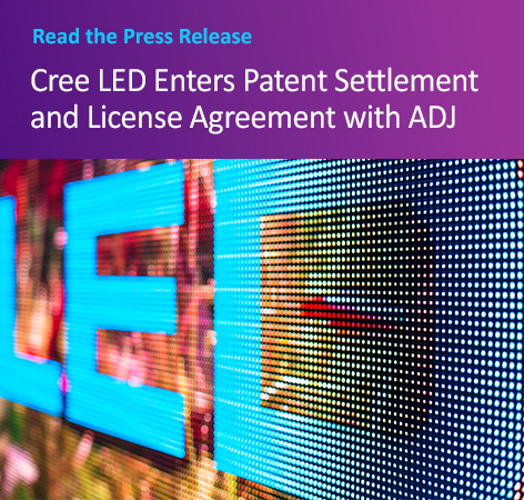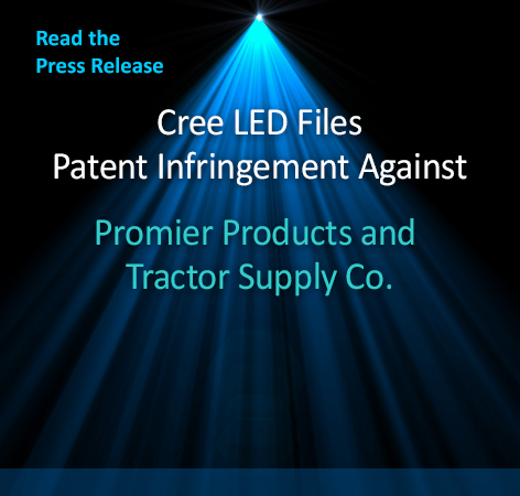 January 20, 2026 Cree LED Enters Patent Settlement and License Agreement with Blizzard Lighting Read More January 13, 2026 A Complete Single-Supplier Solution Backed by the Highest Level of Quality and Support Read More December 2, 2025 SANlight Selects Cree LED for New High-Efficiency STIXX-Series Grow Lighting Read More November 12, 2025 Protecting Innovation: Cree LED Takes Action to Defend Its Portable Lighting Patents Read More September 30, 2025 Dim-to-Warm and Field-Configurable Color Temperatures Made Simple Read More September 24, 2025 Protecting Our IP Strengthens Our Mission to Drive Innovation in LED Display Technology Read More