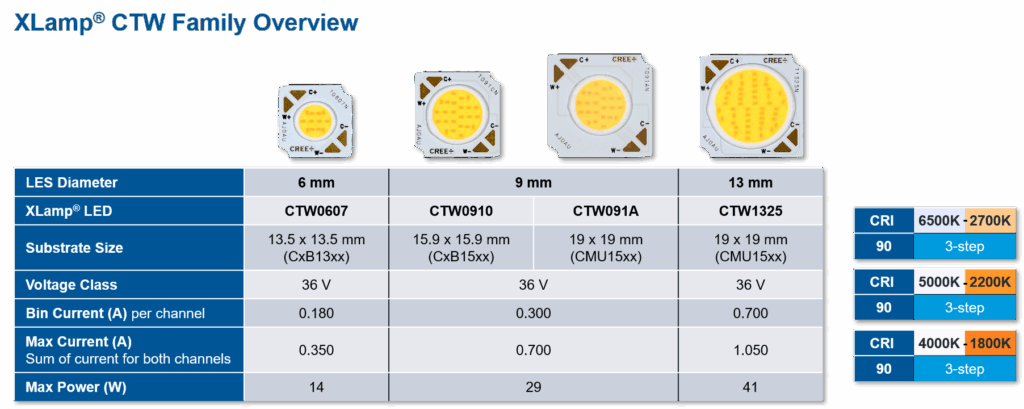 New XLamp® CTW Series – Two-Channel CCT-Tunable White COB LEDs